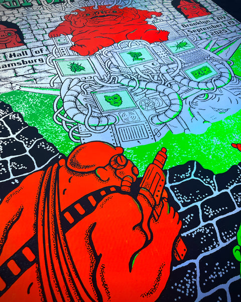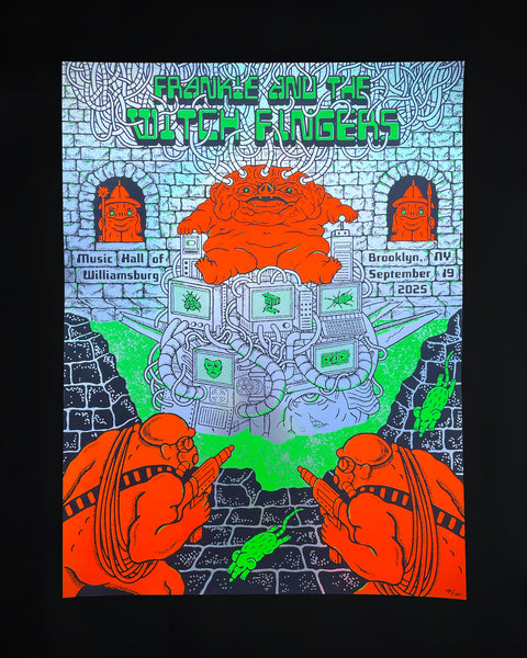 Frankie limited edition foil poster designed by Siobhan McCarthy for Frankie and the Witch Fingers' show at Music Hall of Williamsburg, hand screened and numbered edition of 100.