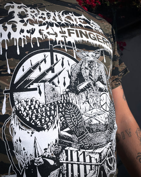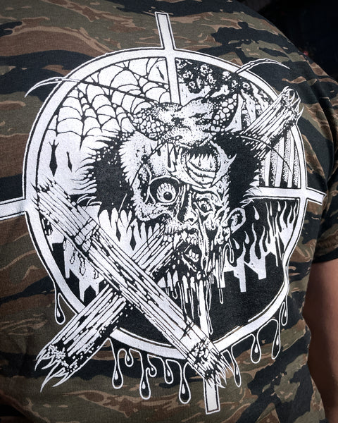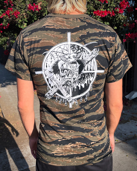Limited edition Frankie and the Witch Fingers tiger stripe camo, silk-screened tee, designed by Ezra Syahdian.