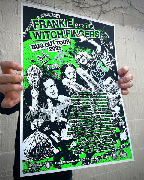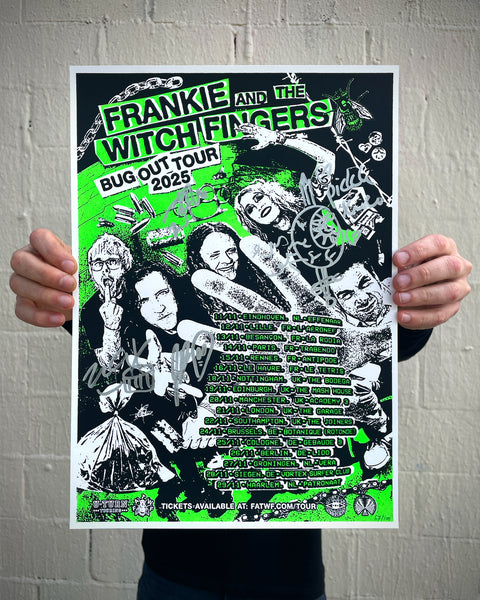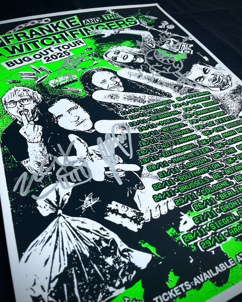 Screen-printed tour poster designed by Nikki Pickle and Jordan Warren, photography by Bella Petro, for Frankie and the Witch Fingers' November 2025 European tour, hand signed by the band.