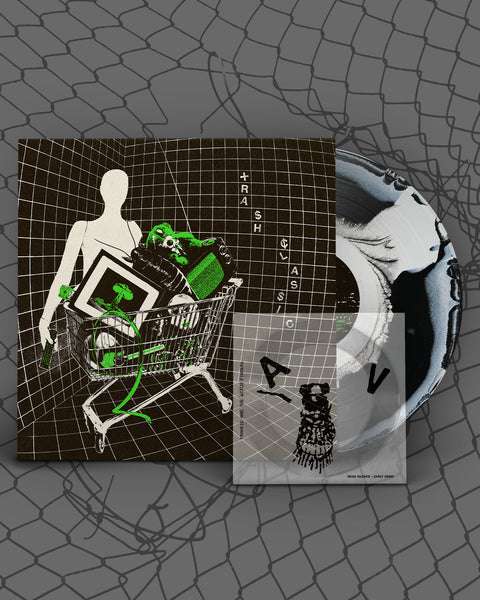 Frankie and the Witch Fingers "TRA$H CLAS$IC" color vinyl LP, first pressing from Greenway Records and Reverberation Appreciation Society. Album artwork by Jordan Warren, photography by Lexi Bonin. Contains an added flexi-disc of an early demo version of "Dead Silence". Only 300, hand-numbered copies pressed.
