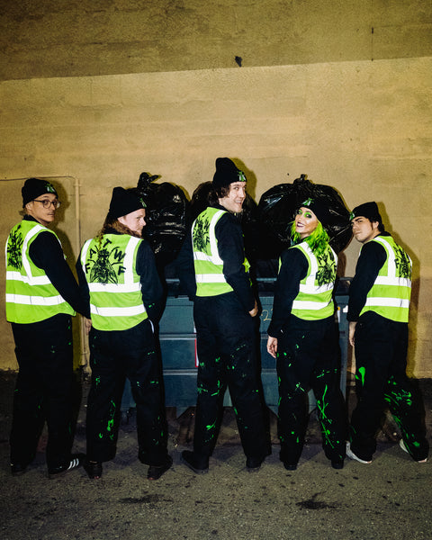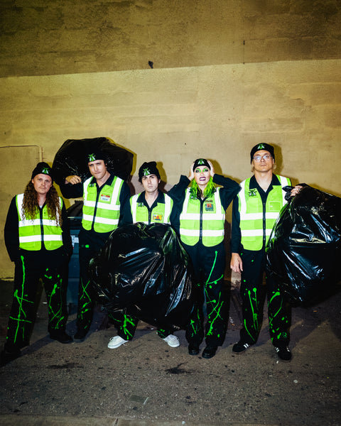 Original and hand-made trash collector costumes from Frankie and the Witch Fingers' Halloween show 2025.