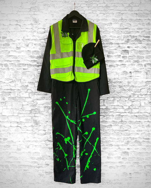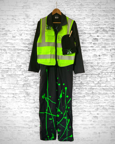 - Includes three pieces: Jumpsuit, beanie, and high-vis vest